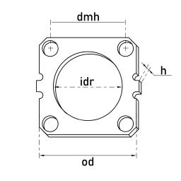 OD mm 54.30, ID mm 29.00, Thickness mm 2.50, Dist. mount. holes 42.00, No./mount. holes 4,